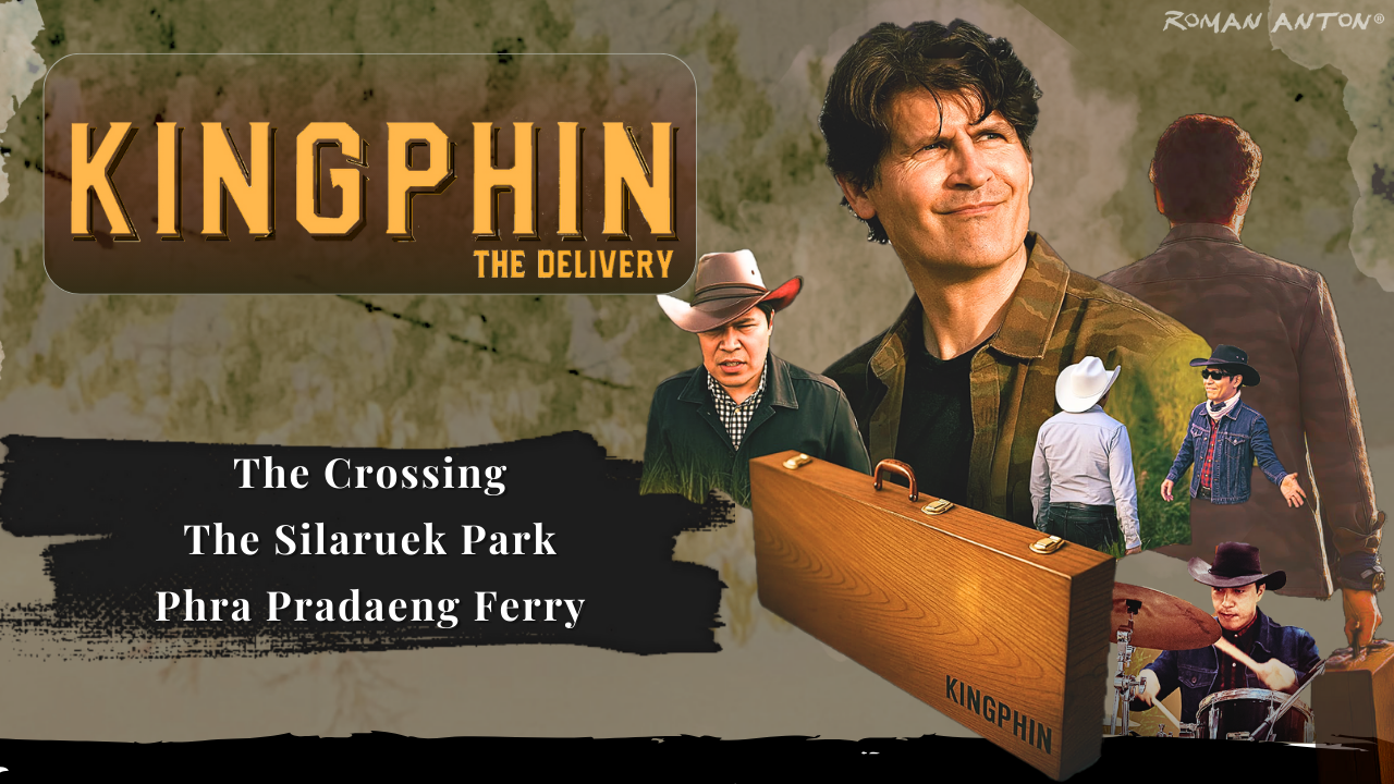 The Deliverer leaves the city streets to meet the fast-flowing currents of the Chao Phraya River where he cautiously boards a ferry. Under the watchful eye of an iconic bridge, he leaves the city behind.
